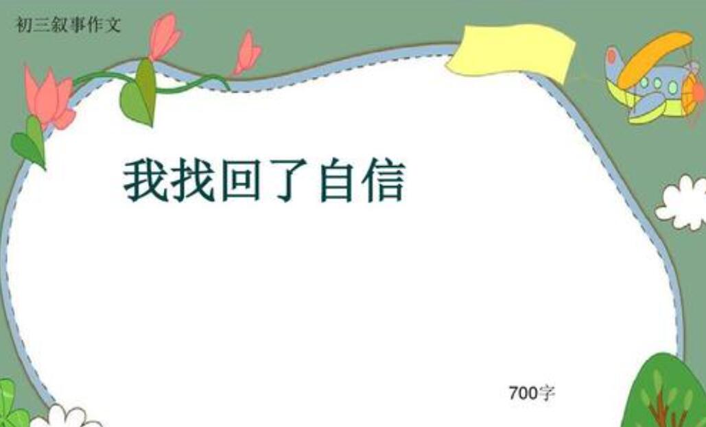 我找回了自信作文800字初三 作者:刘毅成 “老师回来看我们了!”我一楞,随后记忆的暖流涌遍全身,放下手中飞舞的笔,抬头,天空云淡风轻…… 星星之火 几年前一个风和日丽的早晨,“唉……唉……你们听说了吗?我们好像换了新数学老师。”“好像是真的,还...