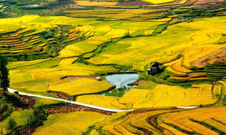走进田野,仿佛自己进入了一片金色的海洋。在阳光的照耀下,闪闪发亮,遍地都是金黄色。稻田里的稻子长的非常的好,每粒稻子都像快要涨破肚皮一样,压得稻穗直往下坠。它的秆非常的细,尽管被压弯了腰,但是任凭风吹雨打它都丝毫没有要趴下的意思。稻田里忙碌的收割机就像是大海里航行的小船,远处的几位农民伯伯脸上露出了甜甜的笑容。在稻田的附近还有一片棉花田,从远处瞧去,成熟的棉花破壳而出,就像天空中的朵朵白云在棉花枝头栖息歇脚,那些没有破壳的就像橄榄高高挂在枝头,这样的棉花让谁看了不心生喜爱之情呢?